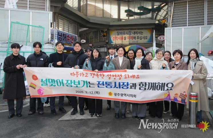 뉴스펀치 최영남 기자 | 광주광역시의회는 2월 12일 민족 최대 명절인 설을 앞두고 전통시장 소비 활성화와 지역 경제 회복을 지원하기 위해 전통시장 장보기 행사를 실시했다.