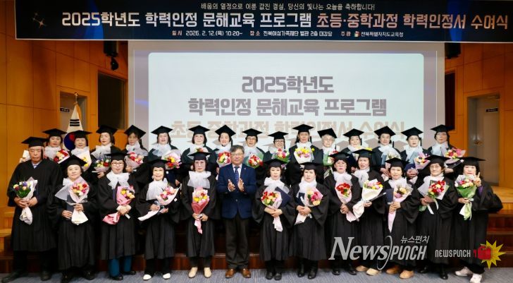 전북특별자치도교육청은 12일 전북여성가족재단 별관 2층 대강당에서 유정기 교육감 권한대행이 참석한 가운데 ‘2025학년도 학력인정 문해교육 프로그램 학력인정서 수여식’을 개최했다.