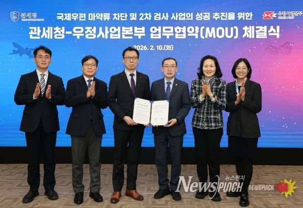 뉴스펀치 정홍균 기자 | 관세청과 과학기술정보통신부 우정사업본부(본부장 직무대리 곽병진)는 2월 10일 서울세관에서 국제우편을 통한 마약류 반입을 원천 차단하기 위해 '국제우편 마약류 차단 및 2차 검사 사업의 성공 추진을 위한 업무협약(MOU)'을 체결했다.