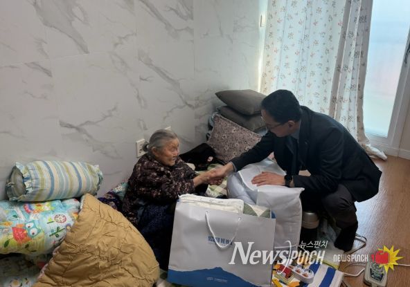 뉴스펀치 김용희 기자 | 제주특별자치도개발공사(사장 백경훈)는 12일 설 명절을 맞아 공공임대주택에 거주하는 90세 이상 어르신을 대상으로 방한용품을 전달했다고 밝혔다.