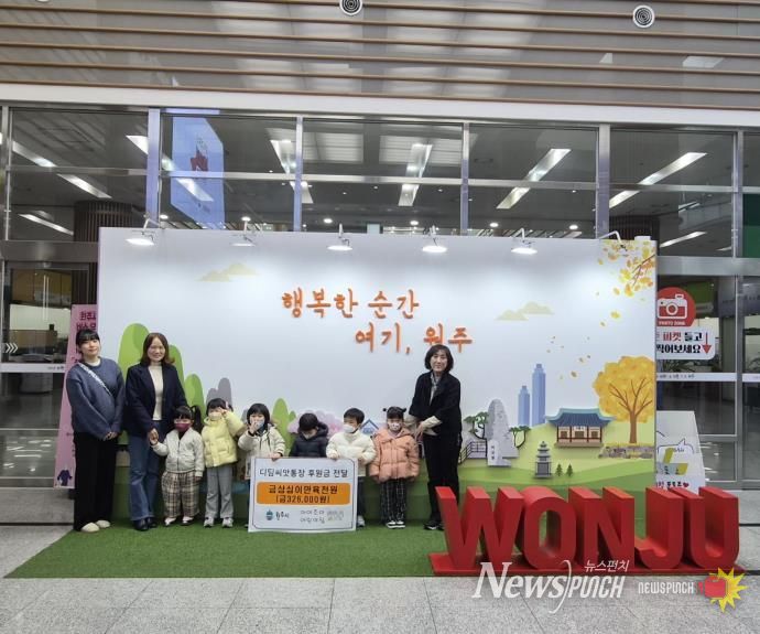 뉴스펀치 조평훈 기자 | 원주 아이조아어린어집은 지난 11일 원아들과 함께 자립 아동 지원을 위한 디딤씨앗통장 후원금 32만 6,000원을 원주시에 전달했다.