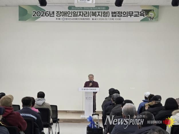 뉴스펀치 박상훈 기자 | 동두천시장애인단체총연합회는 장애인일자리(복지일자리) 참여자의 근로 권익 보호와 안전한 근무환경 조성을 위해 2026년 법정 의무교육을 실시했다. 이번 교육에는 참여자 103명이 참석했다.