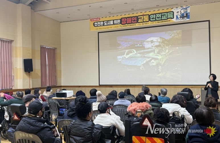 뉴스펀치 최영남 기자 | 정읍시장애인종합복지관이 지난 11일 복지관 2층 강당에서 이용 장애인과 보호자 50여 명을 대상으로 ‘장애인 교통안전교육’을 실시했다.