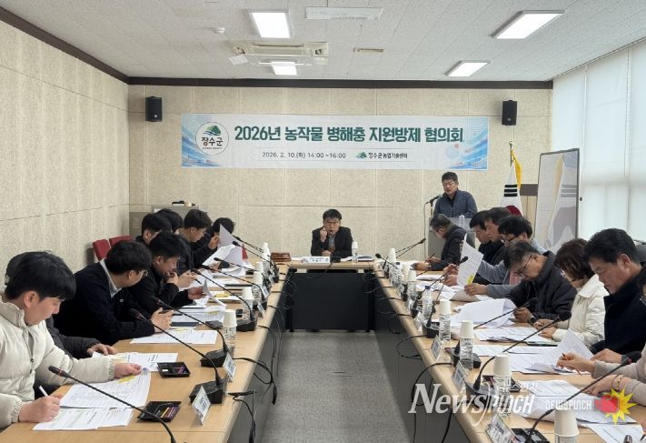 뉴스펀치 최영남 기자 | 장수군은 군 농업기술센터에서 농작물 병해충 선제적 대응을 위해 행정·농협·농업인단체 등 관계위원 17명이 참석한 가운데 ‘2026년 농작물 병해충 지원방제 협의회’를 개최했다고 13일 밝혔다.