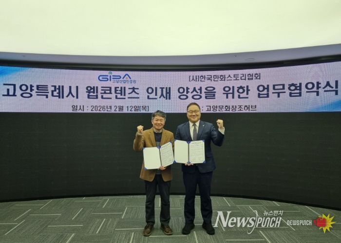 뉴스펀치 박상훈 기자 | 고양산업진흥원이 지난 12일 고양문화창조허브에서 한국만화스토리협회와 웹툰·웹소설 분야 전문 인재 양성을 위한 업무협약을 체결했다.