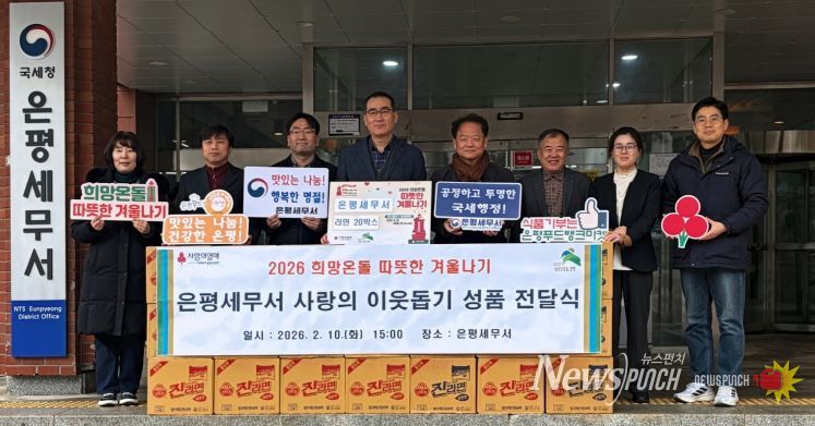 뉴스펀치 박상훈 기자 | 서울 은평구는 지난 10일 은평세무서와 설 명절을 맞아 사랑의 이웃돕기 성품 전달식을 가졌다고 밝혔다.