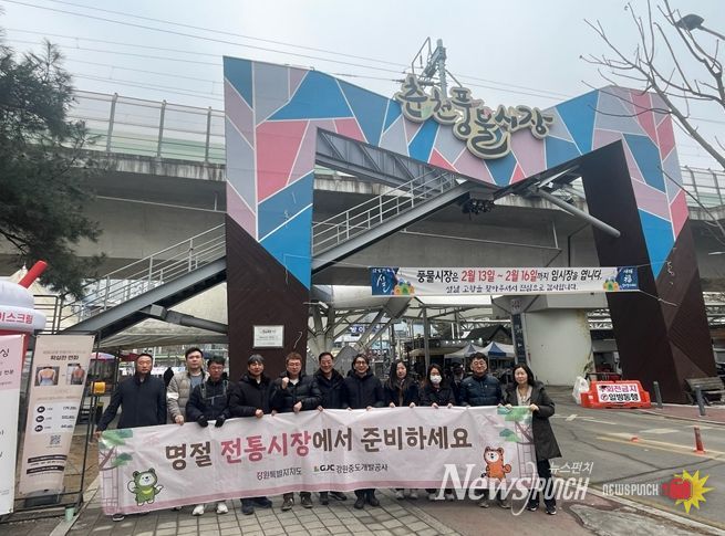 뉴스펀치 조평훈 기자 | 강원중도개발공사는 설 명절을 앞둔 2월 13일(금), 강원특별자치도가 추진하는 ‘2026년 설맞이 전통시장 장보기 행사’에 동참해 춘천 풍물시장에서 장보기 행사를 진행했다.