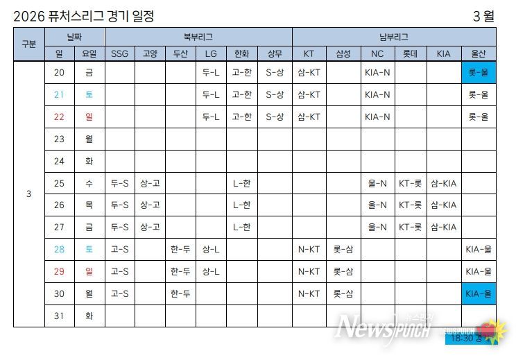 뉴스펀치 박세훈 기자 | 2026 KBO 퓨처스리그가 3월 20일(금) 개막한다.