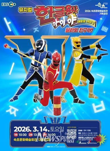 뉴스펀치 조평훈 기자 | 속초시는 3월 14일 10시 30분, 13시 30분, 16시 하루 3회 속초문화예술회관에서 뮤지컬‘한글용사 아이야 새로운 이야기-달라도 친구야’를 선보인다.