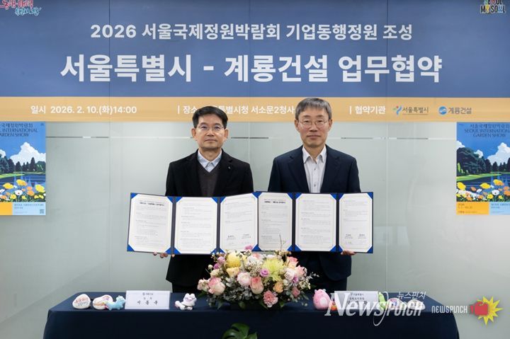 뉴스펀치 박상훈 기자 | 서울시는 2026년 5월 1일에 개막하는 서울국제정원박람회 ‘기업동행정원’ 조성을 위해 계룡건설과 업무협약을 체결하고 ‘회복의 과정’을 담은 정원을 선보인다.