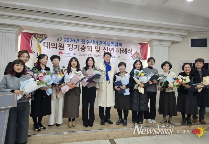 뉴스펀치 정홍균 기자 | 전주시 어린이집 연합회(회장 고철영)는 19일 완산구 중화산동 소재 한 음식점에서 회원 100여 명이 참석한 가운데 ‘2026년 전주시 어린이집연합회 정기총회’를 개최했다.
