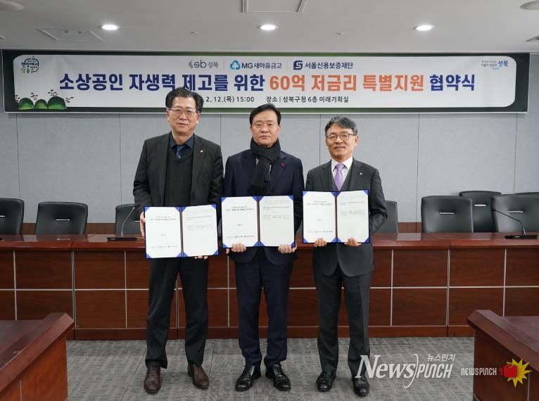 뉴스펀치 박상훈 기자 | 서울 성북구가 12일 새마을금고, 서울신용보증재단과 ‘소상공인 특별융자 지원 업무협약’을 체결하고 60억 원 규모의 특별융자를 추가 시행한다고 밝혔다.