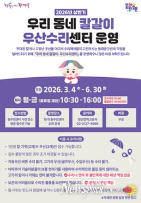 뉴스펀치 박상훈 기자 | 서울 동대문구는 ‘불편을 줄이는 공공서비스가 곧 일자리’라는 방향 아래, 3월 초부터 ‘찾아가는 방문 소독’과 ‘우리 동네 칼갈이·우산수리센터’를 본격 가동한다고 밝혔다. 행정이 먼저 움직여 주민 삶의 틈을 메우자는 취지다.