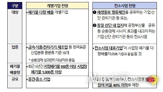 이번 지원사업에는 폐기물을 대량으로 배출하는 제조업종에 해당하는 기업 누구나 신청할 수 있다. 아울러 순환경제 협력 모델의 핵심 주체인 폐기물 다량 배출 대기업 및 중견기업을 비롯해 폐자원 공급망을 공유하거나 동일 산업단지에 입지하고 있는 협력기업 및 산업단지 관리기관과 협력체(컨소시엄) 형태로 참여할 수 있다.