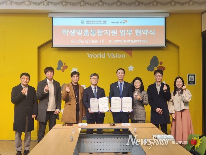 뉴스펀치 조평훈 기자 | 대구서부교육지원청은 2월 23일 월드비전 대구경북사업본부와 교육취약계층 위기아동 및 가족돌봄청소년 지원 등을 위한 업무협약을 체결한다고 밝혔다.