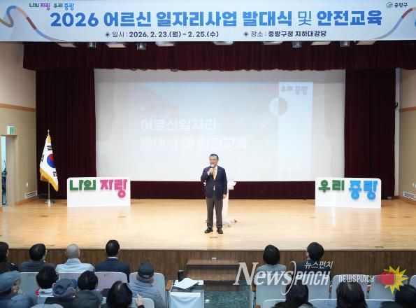 뉴스펀치 박상훈 기자 | 중랑구는 지난 23일 중랑구청 지하대강당에서 ‘2026년 어르신 일자리 및 사회활동 지원사업’ 발대식을 개최하고 참여 어르신을 대상으로 안전교육을 실시했다.