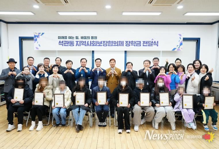 뉴스펀치 박상훈 기자 | 서울 성북구 석관동 지역사회보장협의체가 19일 석관동 주민센터 4층 강당에서 초·중·고 입학생 10명에게 총 500만 원의 장학금을 전달했다.