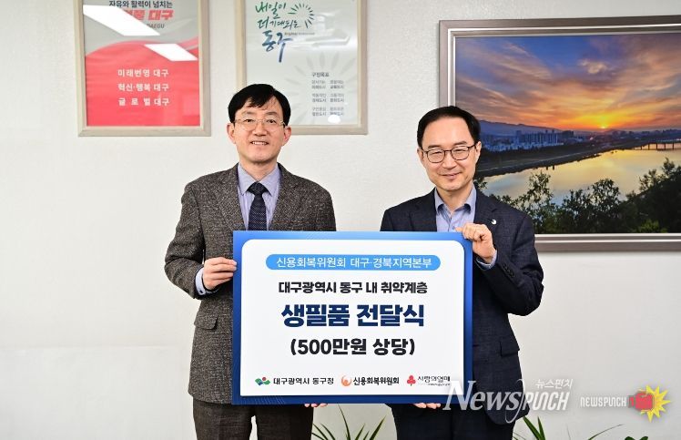 뉴스펀치 조평훈 기자 | 신용회복위원회 대구경북지역본부(본부장 윤용호)는 지난 23일 동구청을 방문해 어려움을 겪고 있는 저소득 세대를 위해 생필품 50상자(500만원 상당)를 기탁했다.