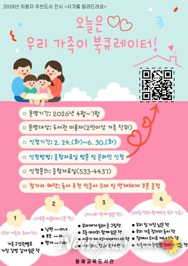 뉴스펀치 조평훈 기자 | 동해교육도서관은 2월 24일부터 6월 30일까지 지역 주민의 독서 참여를 확대하고 가족 간 독서 문화를 확산하기 위해 이용자 도서 추천 참여형 북큐레이션을 운영한다.
