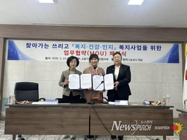 뉴스펀치 조평훈 기자 | 교동지역사회보장협의체는 2월 23일 교동행정복지센터 2층 회의실에서 민간봉사단체 행복나눔보드게임과 지역사회보장 증진을 위한 업무협약(MOU)을 체결했다.