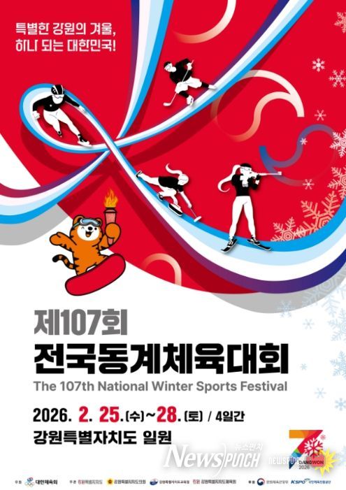 뉴스펀치 박세훈 기자 | 문화체육관광부가 후원하고 대한체육회가 주최하며, 강원특별자치도가 주관하는 ‘제107회 전국동계체육대회’가 2월 25일부터 28일까지 강원특별자치도 및 경상북도 일원에서 개최된다.