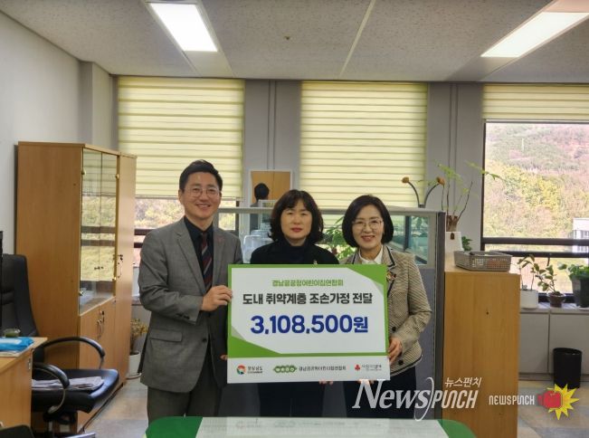 뉴스펀치 박세훈 기자 | 경남도는 25일 경남공공형어린이집연합회(회장 위정숙)가 가정위탁 조손가정을 위해 성금 310만 8천500원을 기탁했다고 밝혔다.