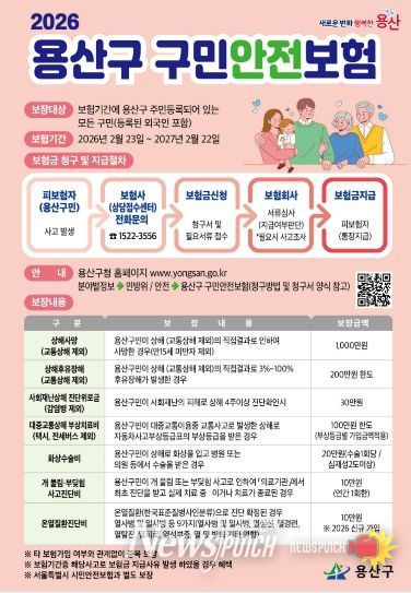 뉴스펀치 박상훈 기자 | 서울 용산구가 2026년에도 전 구민을 대상으로 ’구민안전보험’을 확대 운영한다.