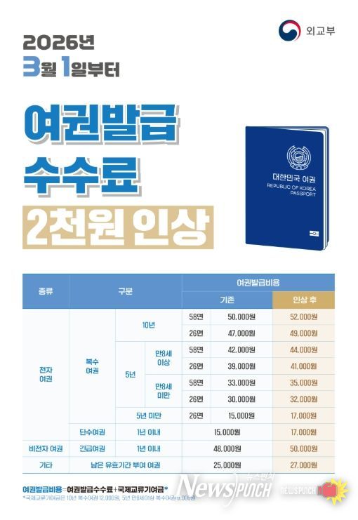 이번 인상은 외교부 방침에 따른 것으로, 2021년 차세대 전자여권 도입 이후 제조·발급 원가가 크게 상승했으나 여권 발급 수수료는 지난 20년간 동결되어 왔다.