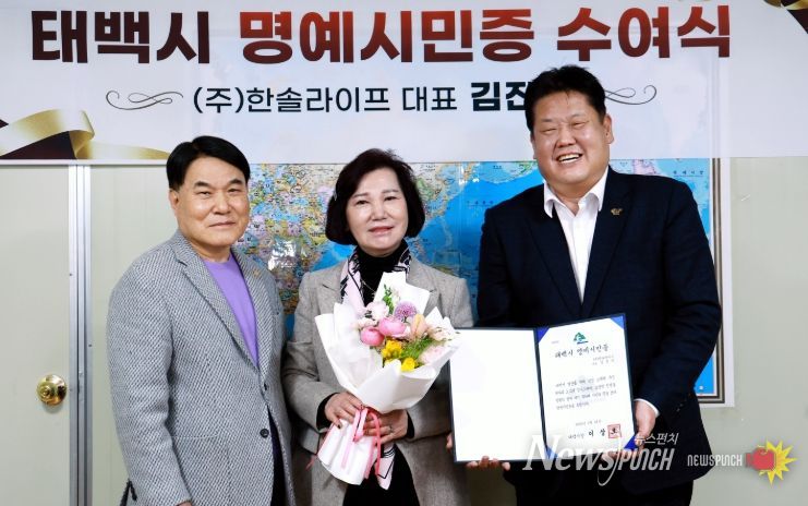 뉴스펀치 조평훈 기자 | 태백시는 지난 24일 김진석 ㈜한솔라이프 대표를 태백시 명예시민으로 위촉했다고 밝혔다.