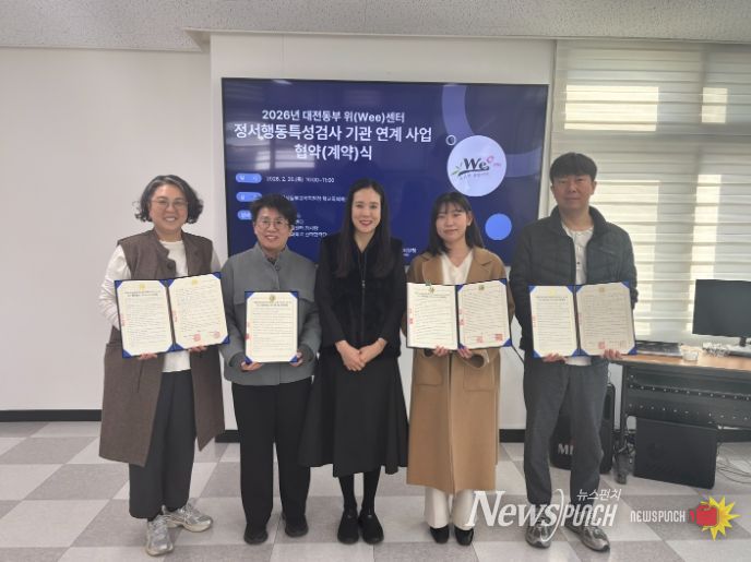 뉴스펀치 이현승 기자 | 대전동부교육지원청 위(Wee)센터는 2월 26일, 2026년 학생정서·행동특성검사 고위험군 학생에 대한 맞춤형 사후관리 지원을 강화하기 위해 전문상담기관 4곳과 업무협약을 체결했다.