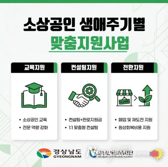 뉴스펀치 박세훈 기자 | 경상남도는 경기침체와 소비 위축 등 어려운 경영 환경 속에서 도내 소상공인의 경쟁력 강화를 위해 ‘소상공인 생애주기별 맞춤 지원사업’을 추진한다고 밝혔다.