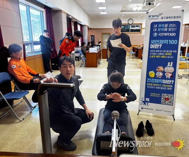 뉴스펀치 조평훈 기자 | 대구소방안전본부는 2월 25일부터 국민체육진흥공단과 함께 일선 소방관서를 방문해 소방공무원 현장대응능력 강화와 체력 증진을 통한 심신(心身) 건강관리를 위한 ‘찾아가는 기초체력 측정 및 맞춤형 운동 코칭’을 실시한다.