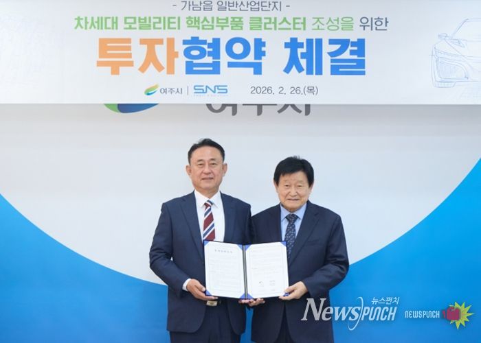 뉴스펀치 박상훈 기자 | 여주시는 26일 오전 10시 시장실에서 ㈜에스앤에스와 ‘차세대 모빌리티 핵심부품 클러스터 조성’을 위한 투자양해각서(MOU)를 체결했다.