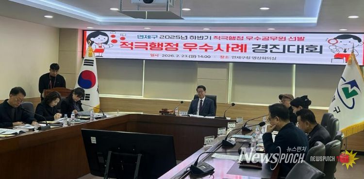 뉴스펀치 김윤걸 기자 | 연제구는 2월 23일, 공직사회 내 적극행정 문화를 확산하고 주민이 체감할 수 있는 행정 혁신 성과를 공유하기 위해 ‘2025년 하반기 적극행정 우수사례 경진대회’를 개최하고 총 4건의 우수사례를 최종 선정했다.