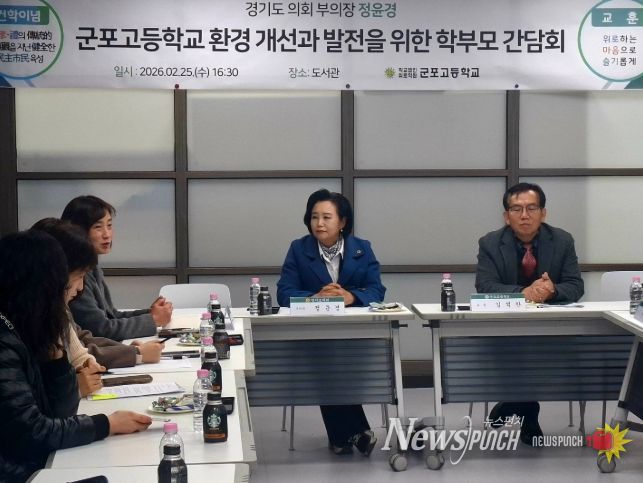 뉴스펀치 박상훈 기자 | 경기도의회 정윤경 부의장(더불어민주당, 군포1)은 2월 25일 군포고등학교 도서관에서 교직원 및 학부모들과 ‘학교 환경 개선과 발전을 위한 학부모 간담회’를 개최하고 학교 현안 전반에 대해 의견을 나눴다.