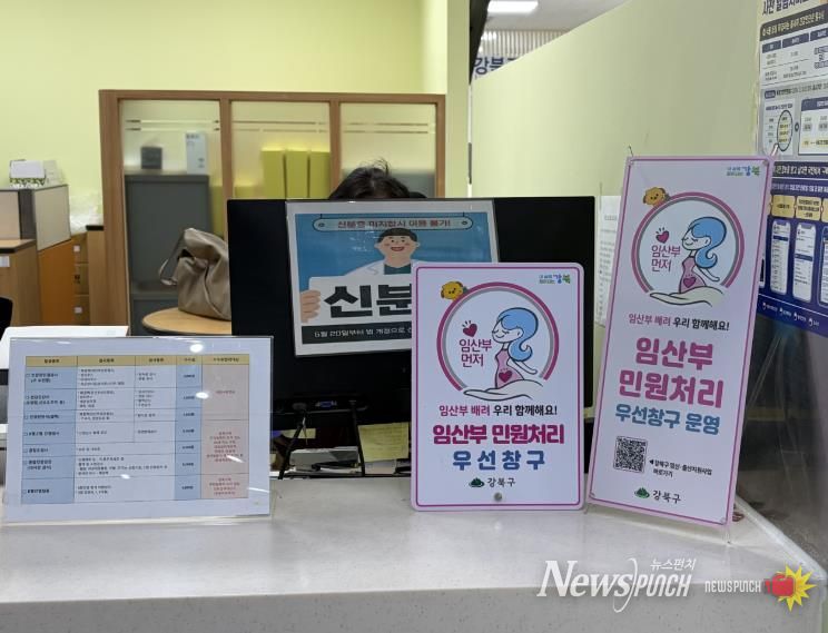 뉴스펀치 박상훈 기자 | 서울 강북구는 관내 주요 민원실에 임산부 우선창구를 마련하고, 대기 없이 즉시 서비스를 이용할 수 있도록 임산부 프리패스 서비스를 본격적으로 제공한다.