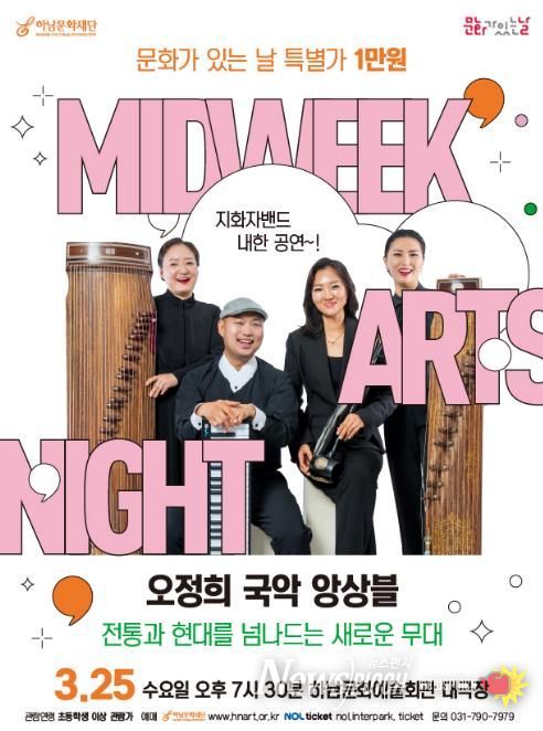 뉴스펀치 박상훈 기자 | 하남문화재단은 오는 2026년 3월 25일 오후 7시 30분, 하남문화예술회관 대극장에서 ‘오정희 국악 앙상블〈전통과 현대를 넘나드는 새로운 무대〉’를 선보인다. 이번 공연은 매월 마지막 주 수요일 운영되는'문화가 있는 날'공연으로, 전석 1만 원의 특별가로 진행된다.