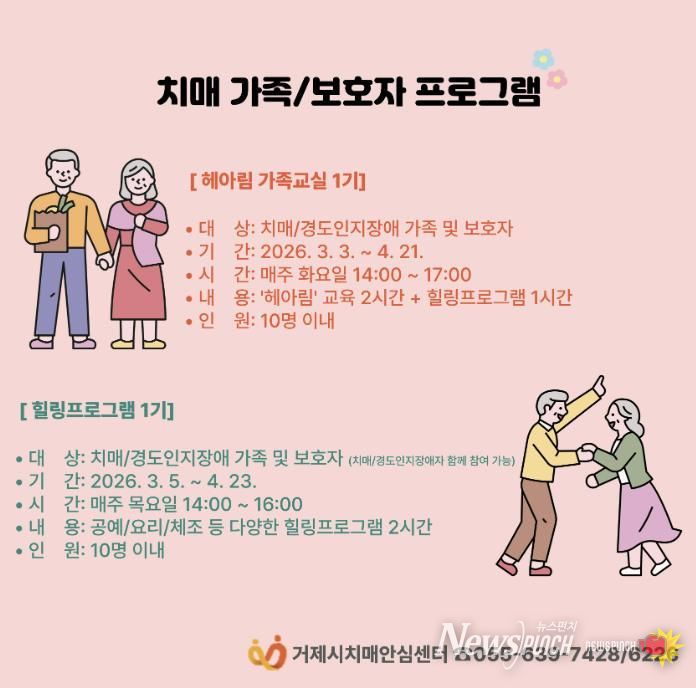 뉴스펀치 박세훈 기자 | 거제시치매안심센터는 치매환자를 돌보는 가족 및 보호자의 신체·심리적 부담을 완화하고 정서적 지지를 제공하기 위해 가족지원사업을 운영한다고 밝혔다.