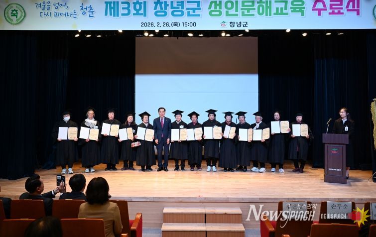 뉴스펀치 박세훈 기자 | 창녕군은 26일 창녕문화예술회관에서 ‘제3회 창녕군 성인문해교육 수료식 및 시화전’을 개최했다.