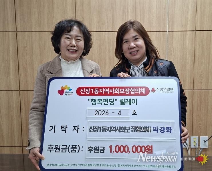 뉴스펀치 박상훈 기자 | 오산시 신장1동은 지난 26일 신장1동 지역사회보장협의체 박경화 위원이 관내 취약계층을 위해 후원금 100만원을 기탁했다고 밝혔다.