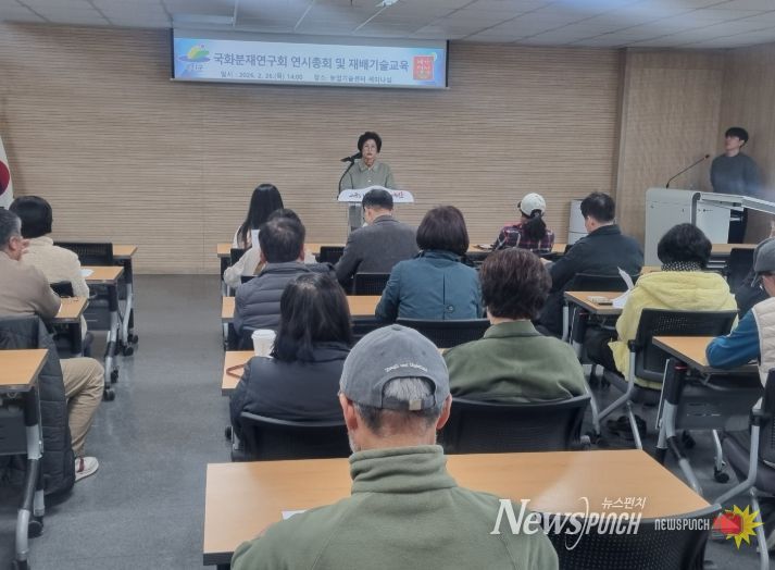 뉴스펀치 강영선 기자 | 예산군농업기술센터는 지난 26일 센터 2층 세미나실에서 국화분재연구회 연시총회와 재배기술교육을 실시했다.