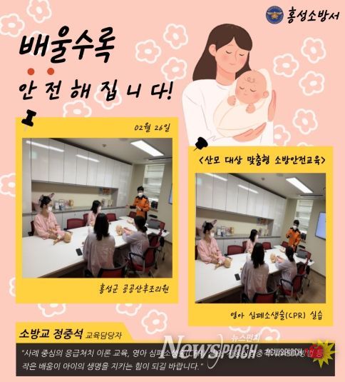 뉴스펀치 이현승 기자 | 홍성소방서는 2월 12일과 26일 홍성군 공공산후조리원에서 산모를 대상으로 맞춤형 소방안전교육을 실시했다.