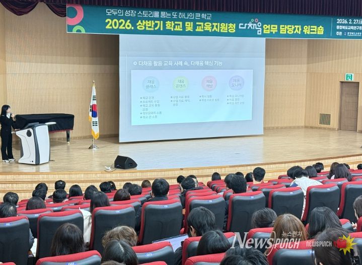 뉴스펀치 이현승 기자 | 충청북도교육청은 27일, 교육연구정보원 시청각실에서 학교 및 교육지원청 다채움 업무 담당자 450여 명을 대상으로 〈2026. 상반기 다채움 업무 담당자 워크숍'을 실시했다고 밝혔다.