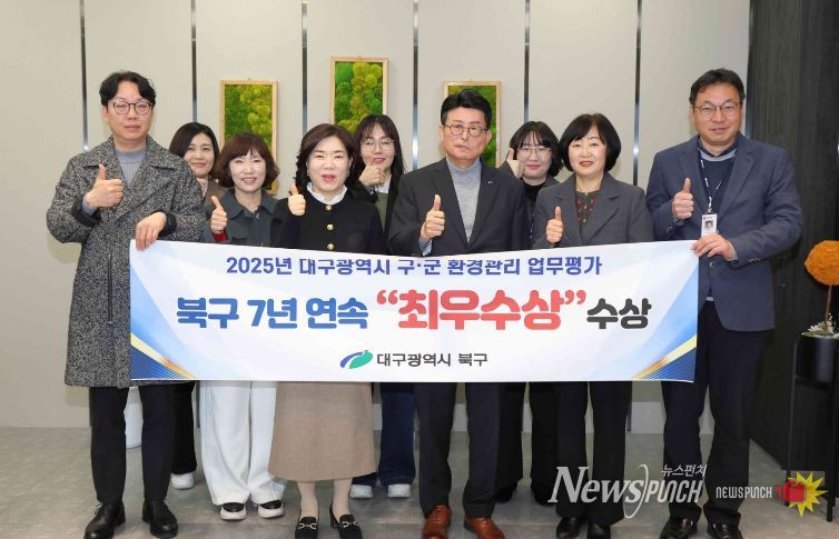 뉴스펀치 조평훈 기자 | 대구 북구청은 대구광역시가 주관한 ‘2025년도 구·군 환경관리업무 평가’에서 7년 연속 최우수 기관으로 선정됐다.