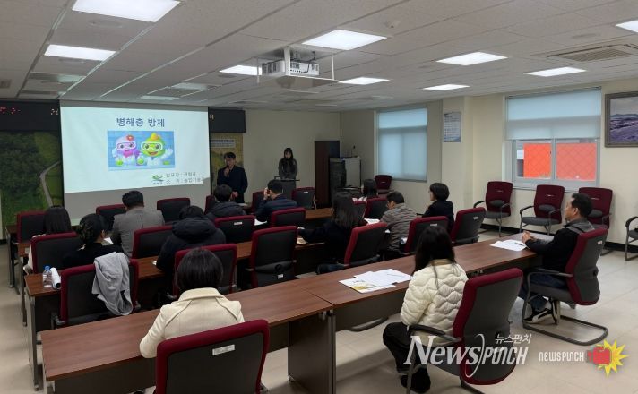 뉴스펀치 박세훈 기자 | 고성군은 2월 26일 고성군농업기술센터 소회의실에서 읍·면 담당자와 관내 공동방제 농작업 대행업체 관계자들이 참석한 가운데 벼 병해충 방제 업무 역량 강화를 위한 연찬회를 개최했다.