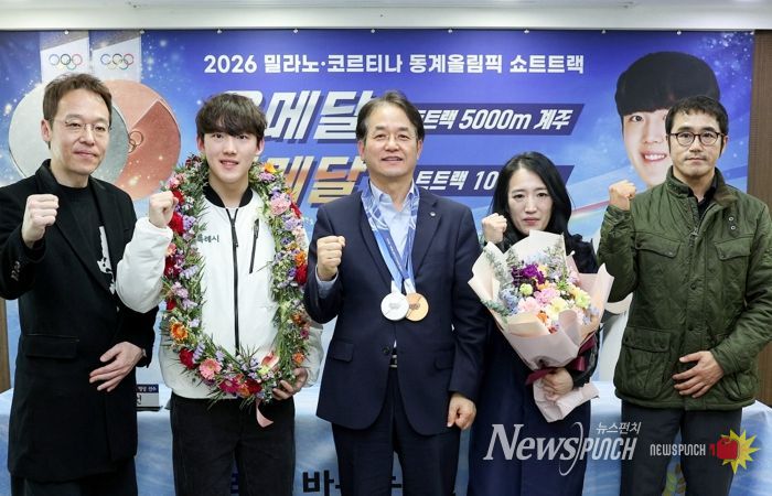 뉴스펀치 박상훈 기자 | 고양특례시는 27일 오후 2시 시청 대회의실에서 ‘2026 밀라노-코르티나 동계올림픽’ 쇼트트랙 메달리스트인 고양시청 빙상팀 임종언 선수의 성과를 축하하는 환영 기자회견을 개최했다.