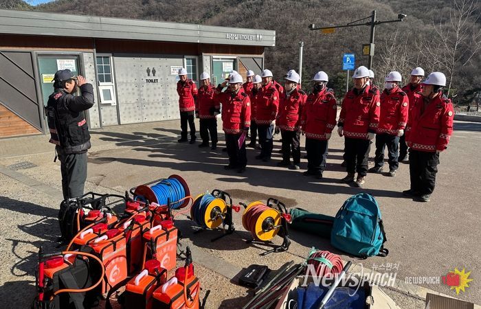 2월 24일에는 초막골생태공원 내 생태교육실에서 산불·산사태·병해충 대응 관련 이론 교육을 실시하고, 이튿날인 25일에는 에덴기도원(속달동 소재) 인근 능선에서 다양한 산림 재난을 현장에서 선제적으로 대응할 수 있는 현장 실습 교육을 병행했다.