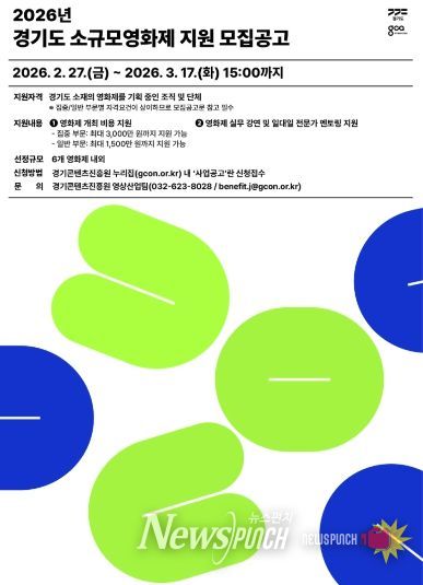 뉴스펀치 박상훈 기자 | 경기도와 경기콘텐츠진흥원이 소규모 영화제 활성화를 위해 최대 3천만 원을 지원하는 ‘2026년 경기도 소규모영화제 지원’ 사업 참가자를 3월 17일까지 모집한다.