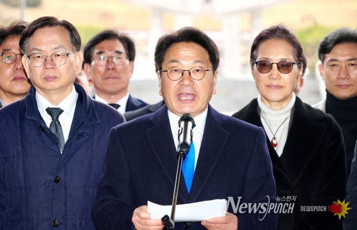 강기정 시장 등 광주광역시 간부들과 공공기관장들은 2일 북구 국립5·18민주묘지를 참배한 뒤, 민주의문 앞에서 통합특별법 국회 통과 환영 입장문을 발표했다.