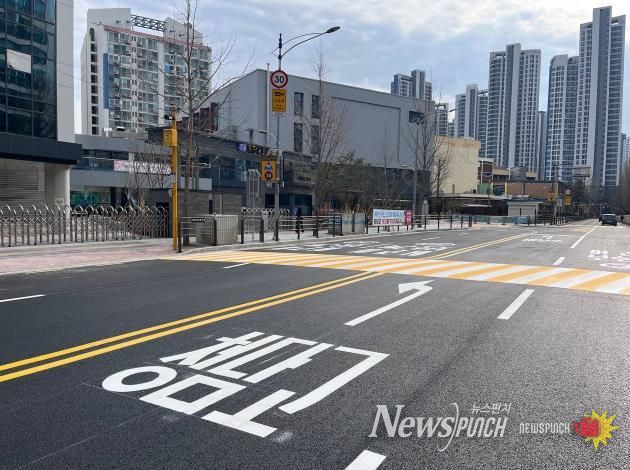 먼저 구는 통학 시간대에 차량과 보행 동선이 집중되는 점을 고려해 청담고 정문 일대 교통운영 체계를 정비했다. 반원초와 청담고 사이부터 반포3동주민센터 삼거리 구간(신반포로23길)은 기존 2차로에서 4차로로 확장해 교통 흐름이 원활하도록 하고, 학교 주차장 출입구 앞에는 기존 중앙선을 일부 삭선하며 좌회전 표시와 정지선 등 노면표시를 신설해 안전한 운행이 가능해지도록 조치했다.